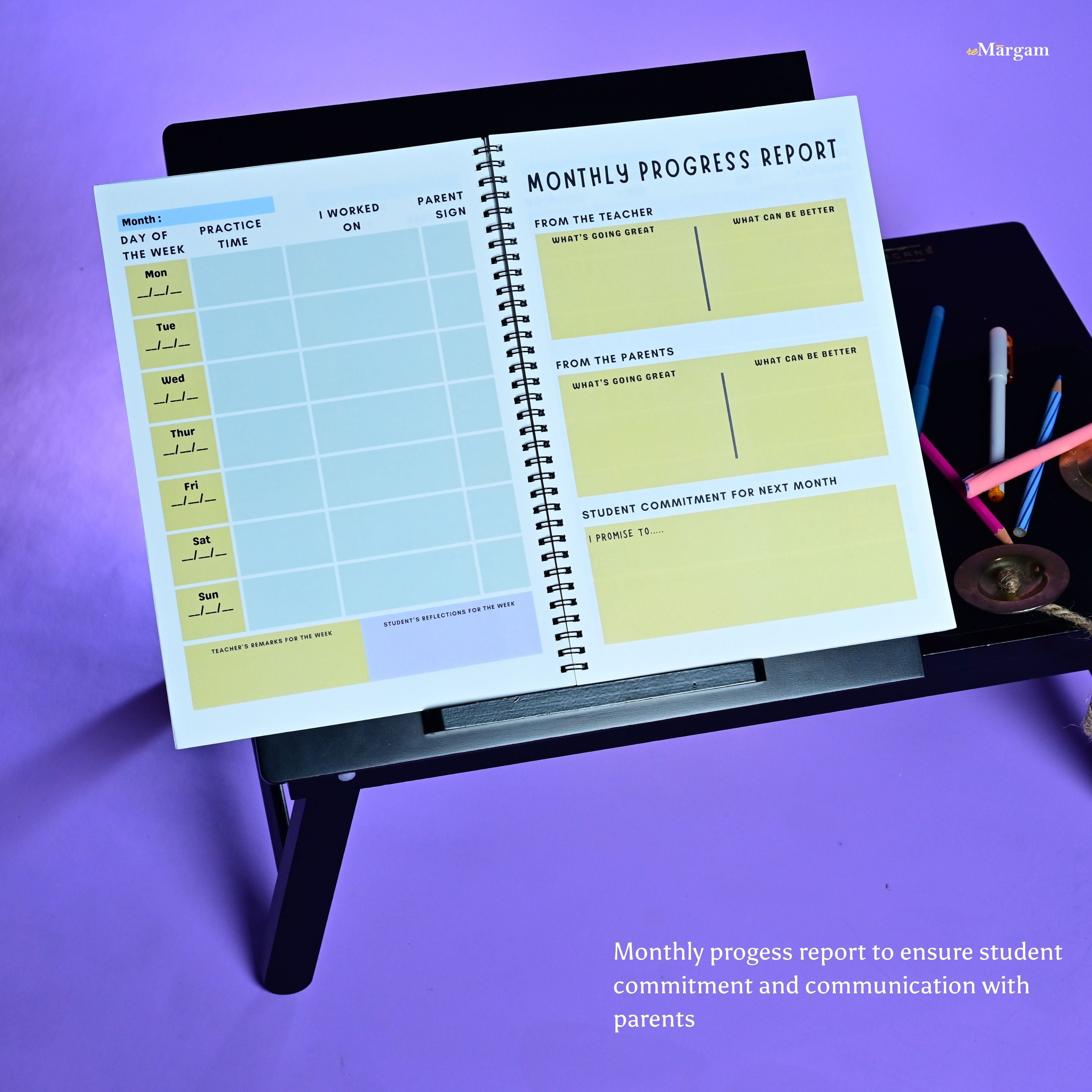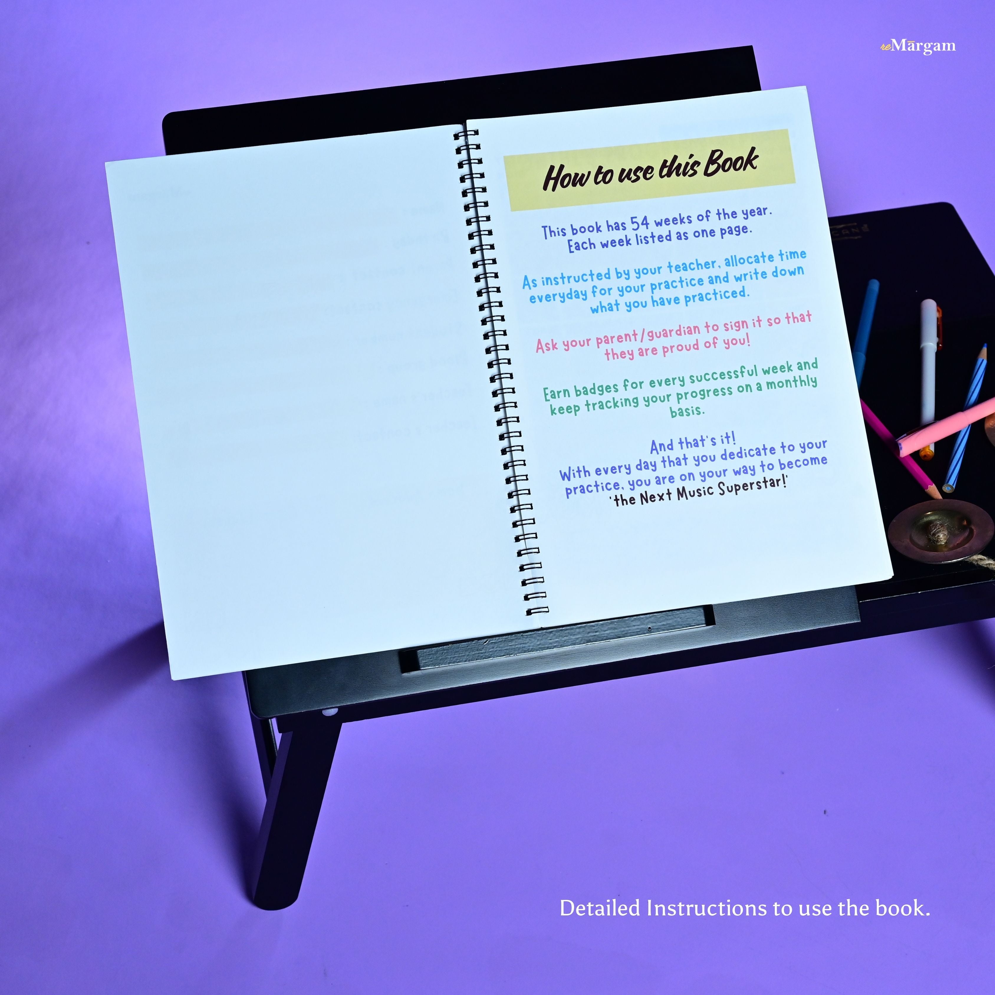 Introducing reMargam’s Music Practice Book, thoughtfully designed for music students to stay motivated, consistent, and aware of their progress.