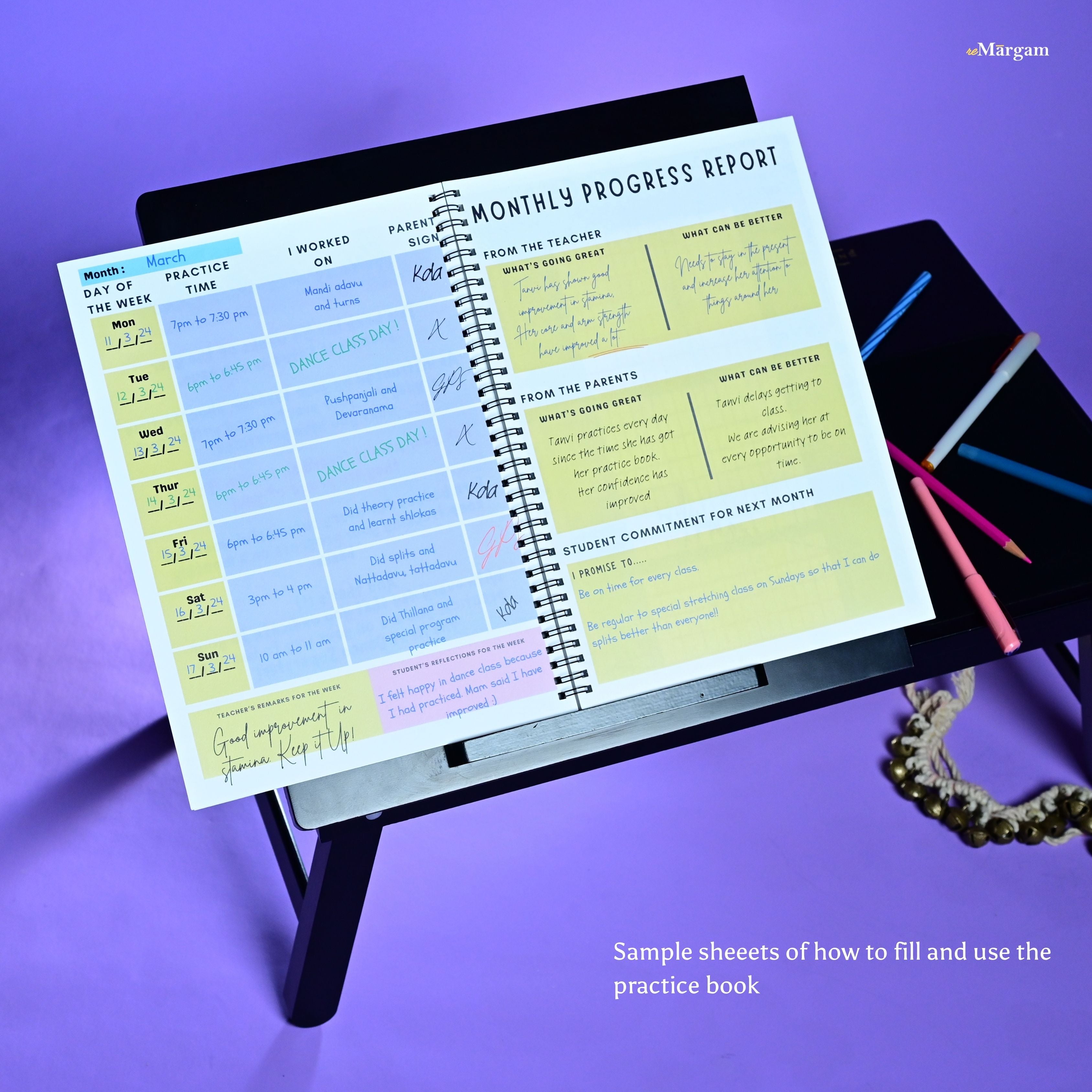 Introducing reMargam’s Dance Practice Book, thoughtfully designed for dance students to stay motivated, consistent, and aware of their progress.